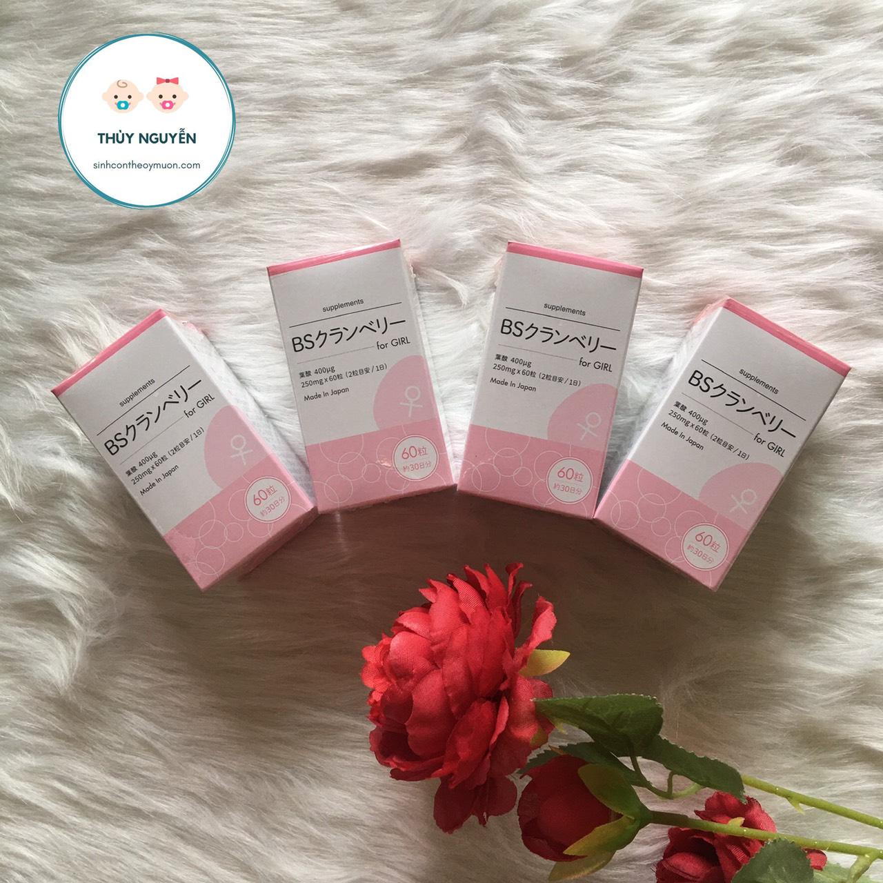 Trước tiên là mẹ uống Viên uống Cranberry Bs For Girl của Nhật, nên uống ít nhất trong vòng 1-2 tháng trong thời gian thả bầu. Canberry BS For Girl có thành phần quan trọng Cranberry chiết xuất từ những quả Việt Quất chín mọng kết hợp với các loại vitamin, khoáng chất, axid folic.