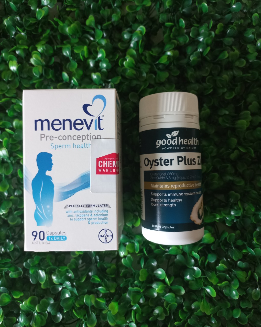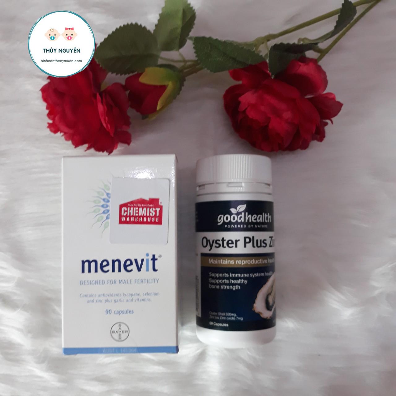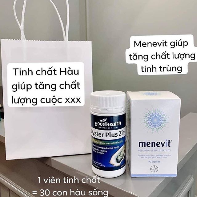 - Bộ đôi Menevit của hãng Bayer danh tiếng và Tinh chất hàu Oyster Plus của GoodHealth giúp tăng cường sinh lý nam giới, tăng nồng độ và chất lượng tinh trùng do đó tăng khả năng thụ thai ở nam giới. Các cặp vợ chồng đang mong ngóng có em bé, đặc biệt là bé trai thì nên sử dụng bộ đôi này nhé!