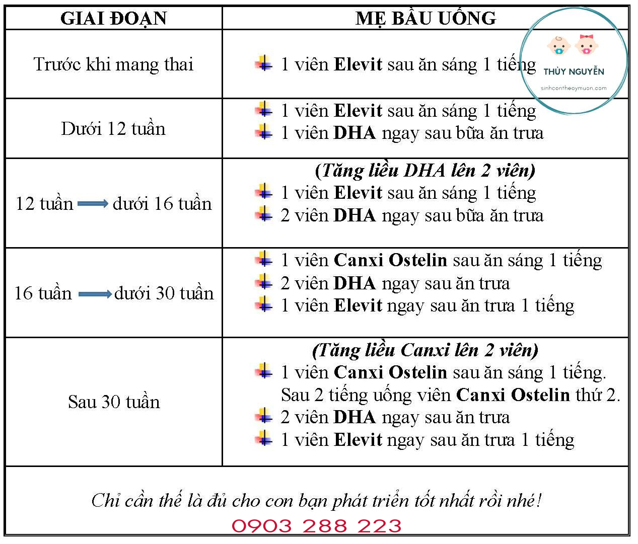 Siêu đủ giúp mẹ có 1 thai kỳ khoẻ mạnh. Mẹ khoẻ, con trộm vía. - ELEVIT bầu Úc 100 viên: Cung cấp đầy đủ các loại vitamin, khoáng chất cần thiết cho phụ nữ trước, trong và sau khi mang thai. Vitamin được ưa chuộng nhất hiện nay - CANXI Ostelin & D3 Úc -130 viên: Bổ sung canxi cho sự phát triển hệ xương.