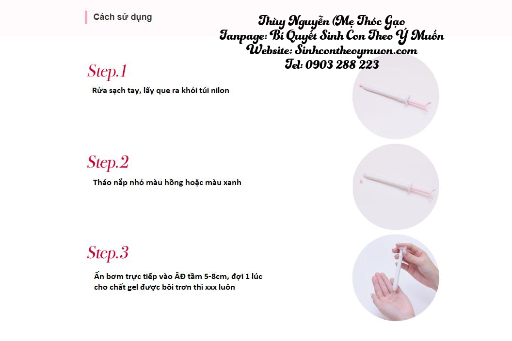 Bước 3: - Cho sâu vào âm đạo chừng 5-8cm của que Gel Baby Support
